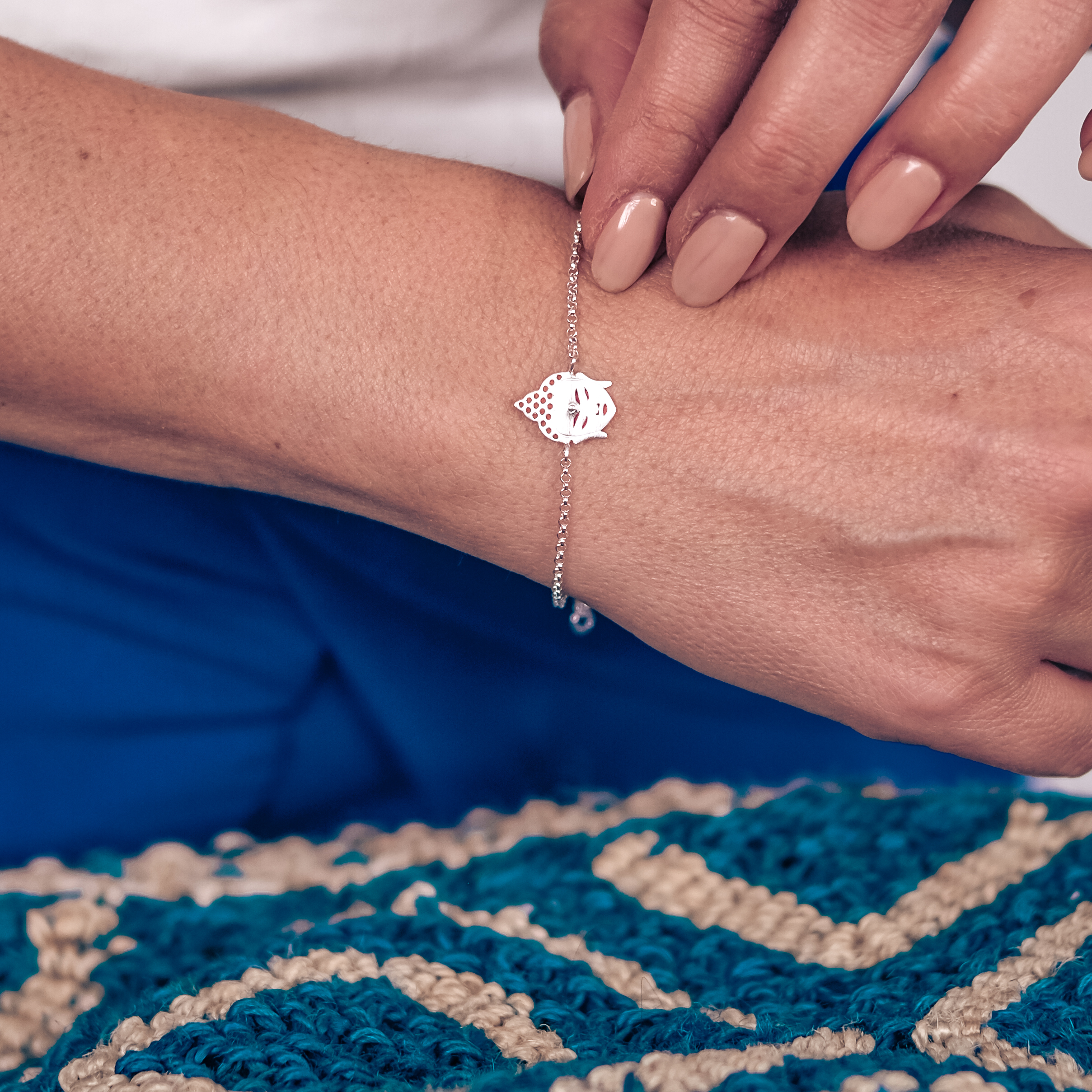 Außergewöhnliches Armband mit Buddhadesign. Mit diesem coolen It-Piece werden Sie alle Blicke auf sich ziehen.