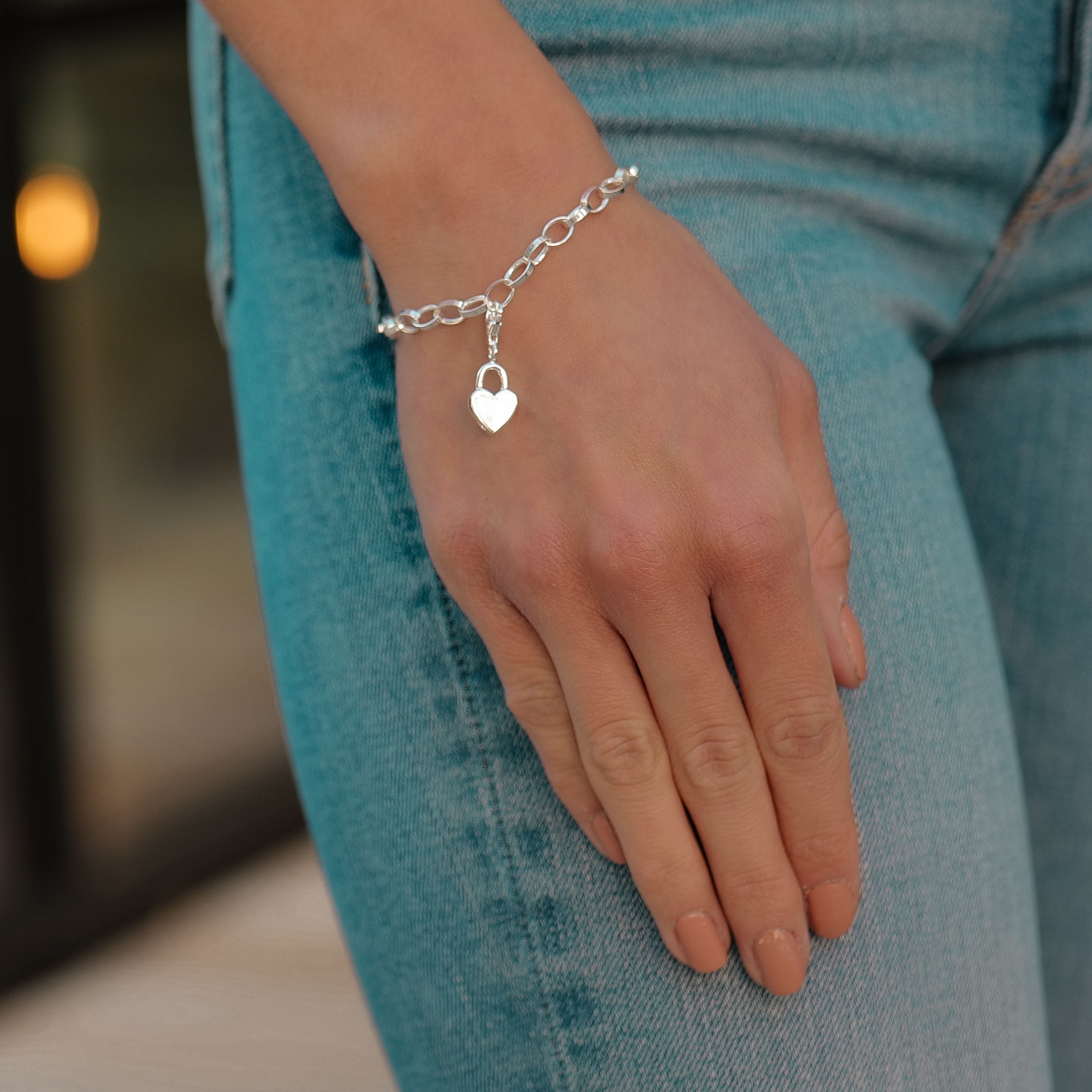 Dank dem Karabinerverschluss ist das Charms Armband längenverstellbar.