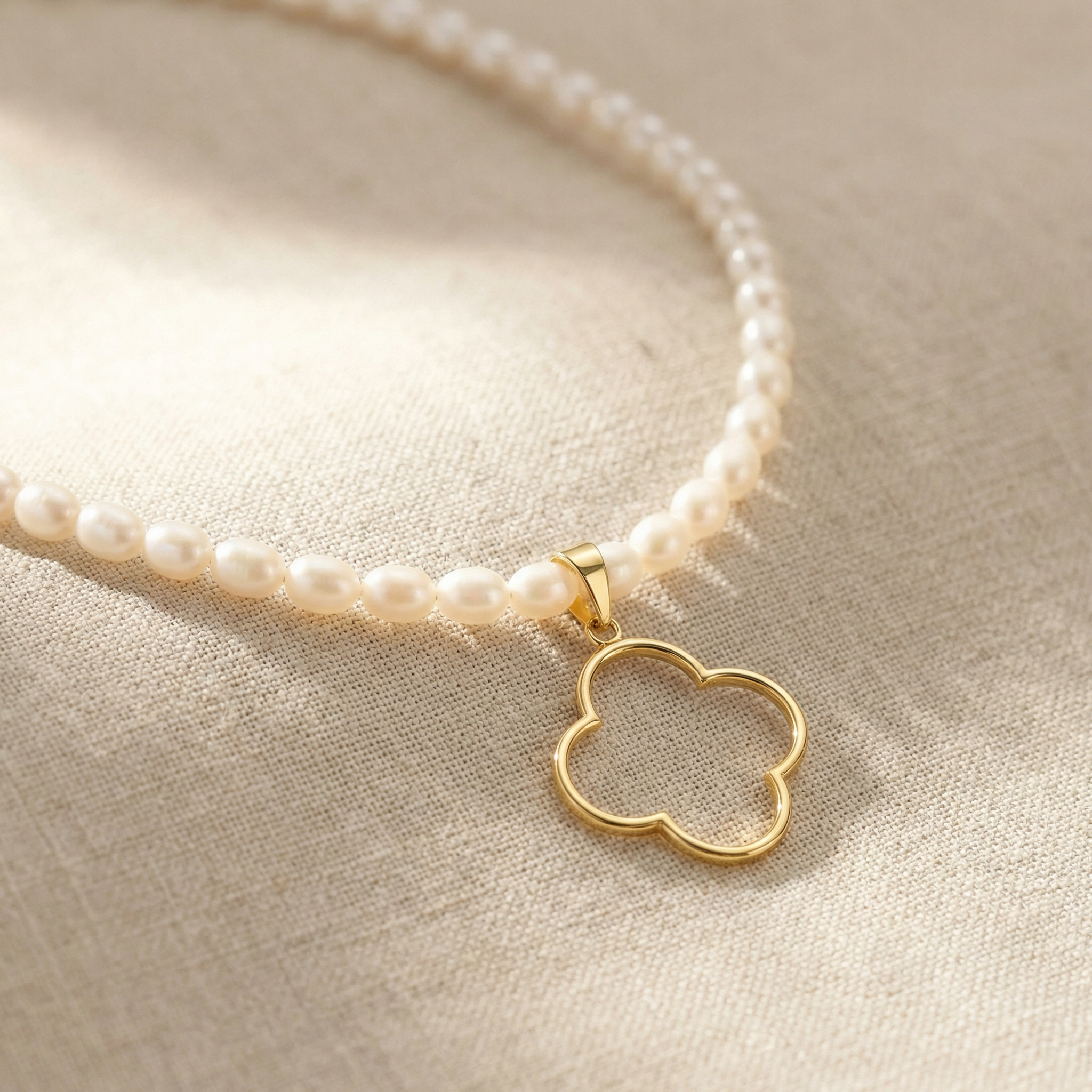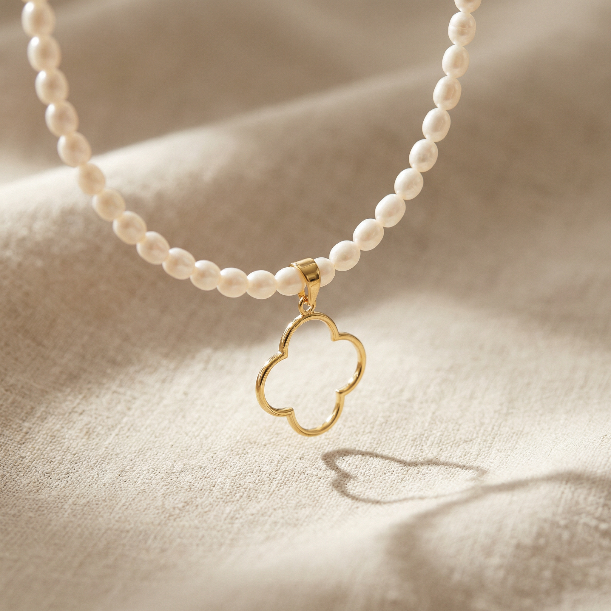 Unsere neue Perlenkette COLUMBIANA mit Süsswasserperlen und dem kleeblattförmigen Anhänger ist ganz nach Ihrer Persönlichkeit auch mit diversen Mainpunkt Ketten individuell kombinierbar.