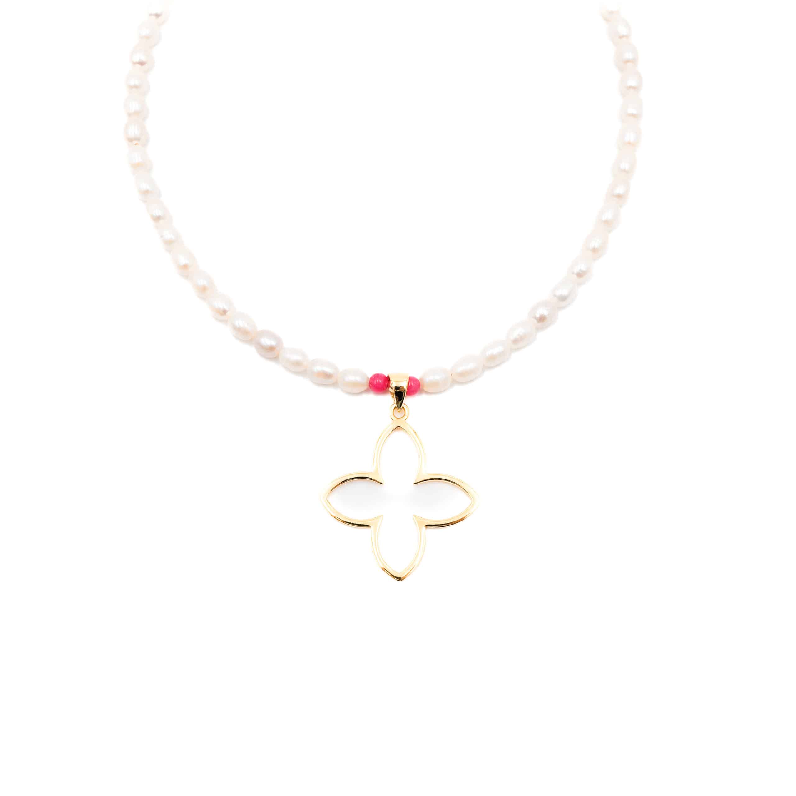 Unsere neue Perlenkette COSLADA NO2 mit Süsswasserperlen und dem kleeblattförmigen Anhänger ist ganz nach Ihrer Persönlichkeit auch mit diversen Mainpunkt Ketten individuell kombinierbar.