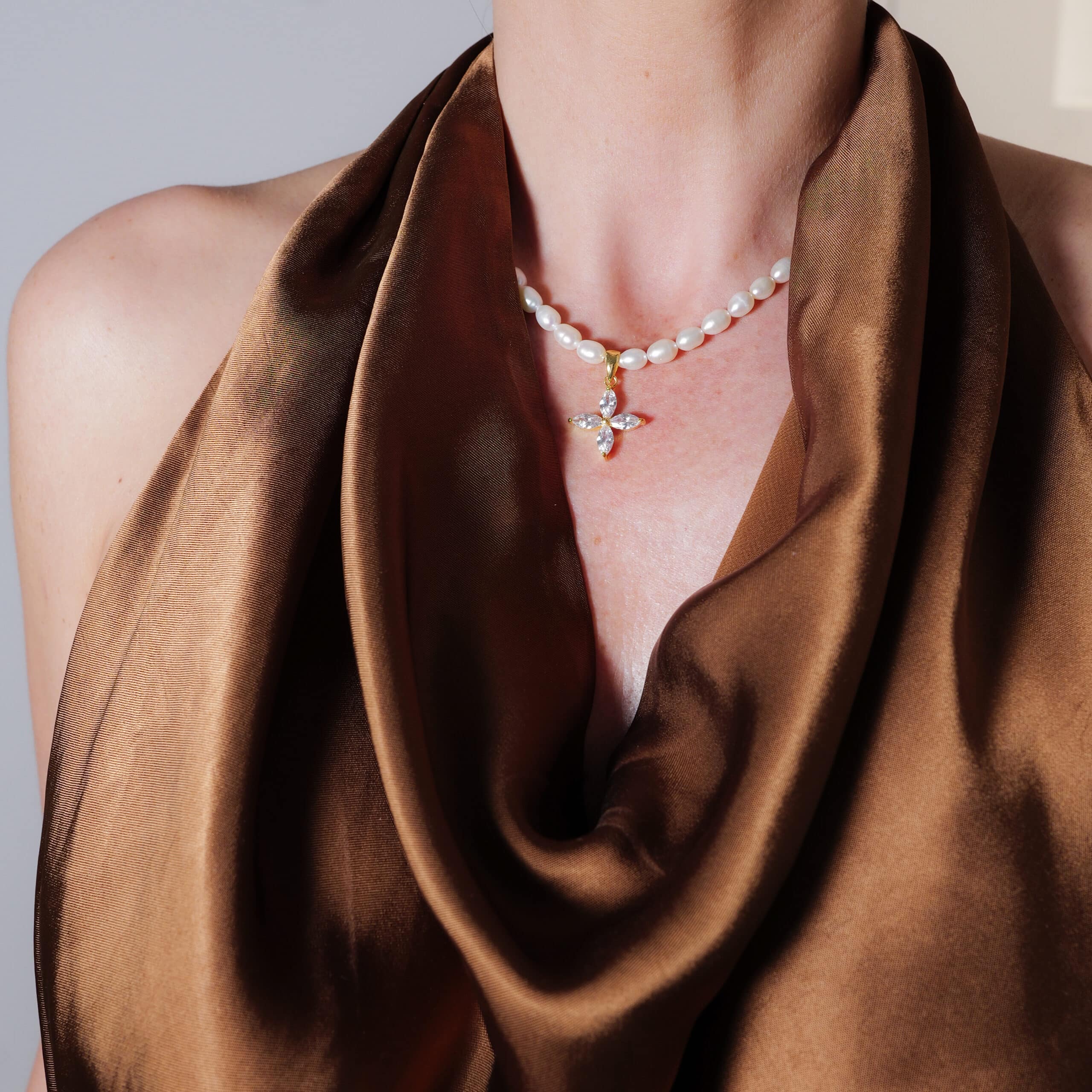 Schillernd, atemberaubend und faszinierend – die Kleeblatt Süsswasserperlenkette ELENI setzt neue Statements.