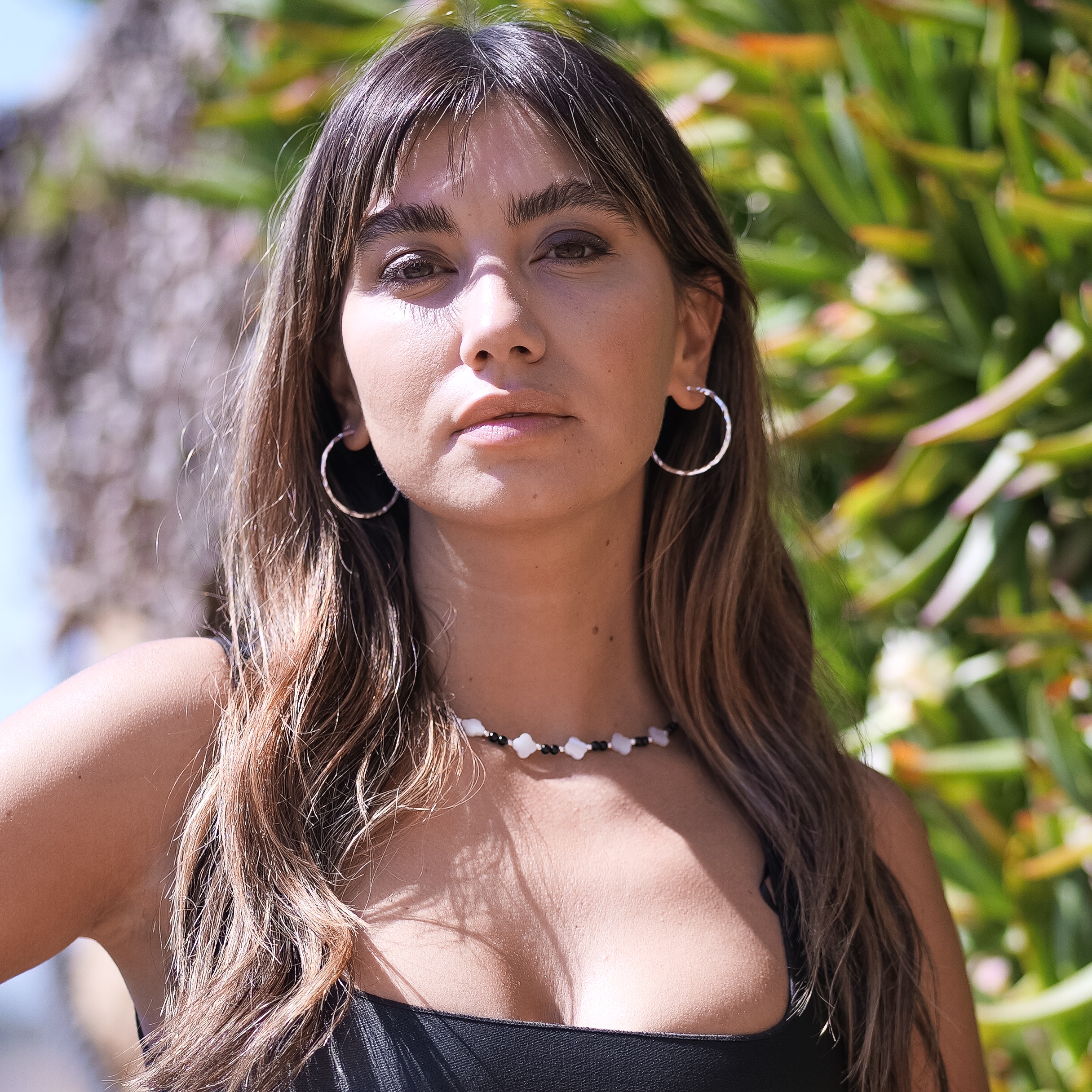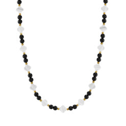 Die Kleeblatt Kette ERNESTINA aus schillernden kleeblattförmigen Perlmuttanhängern und aus 925′ Sterling Silber Kugeln, wird mit unserem charakteristischen auffallenden Kleeblatt Design aus Perlmutt zum unverwechselbaren Schmuckstück. Unsere neue Kette ERNESTINA mit Onyx Steinen und den goldplattierten Sterling Silber Kugeln ist ganz nach Ihrer Persönlichkeit auch mit diversen Mainpunkt Ketten individuell kombinierbar.