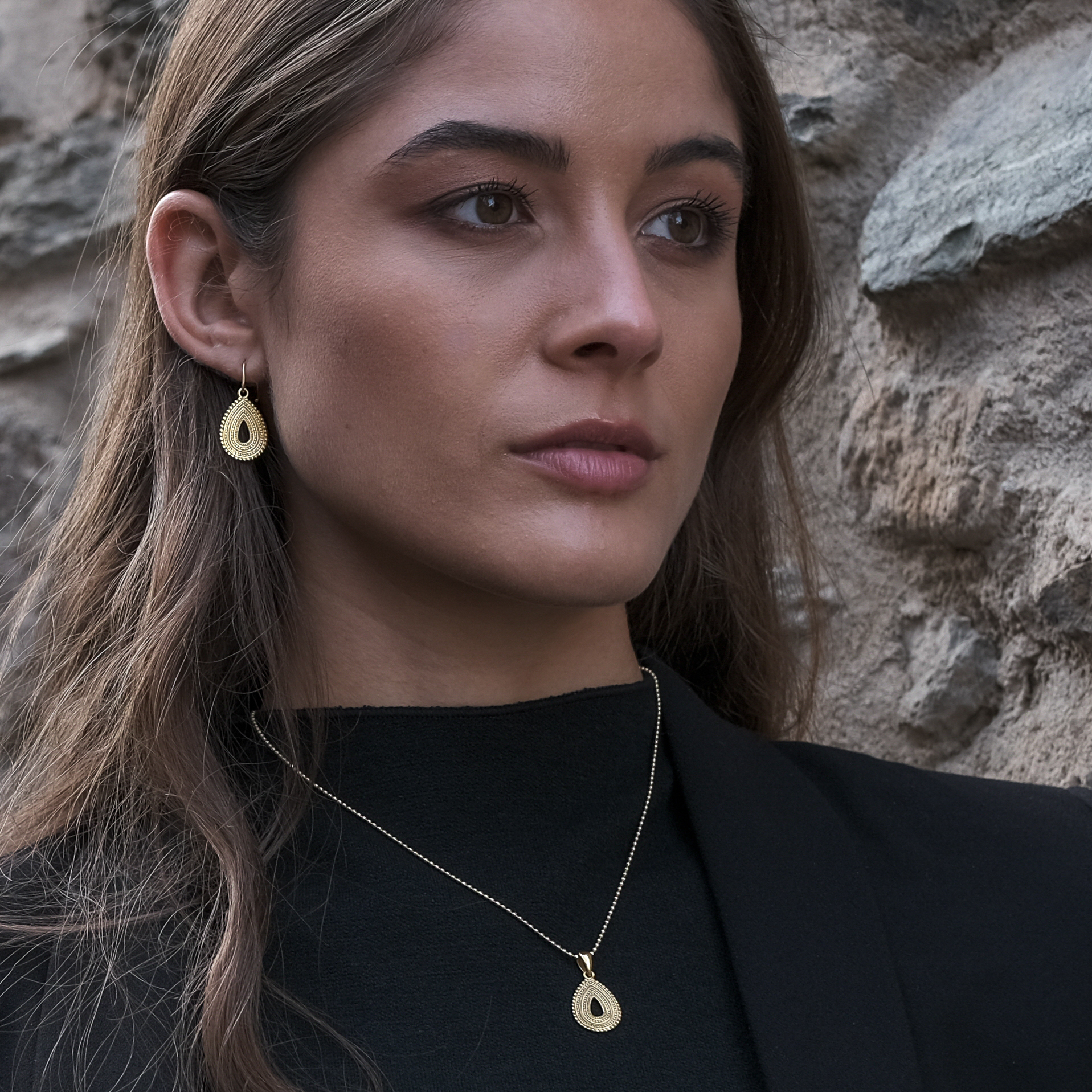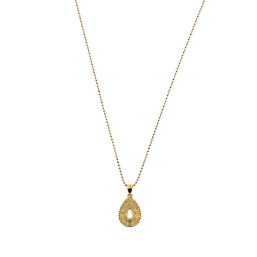 Zu Ihrem cleanen Look ist dieser Ornament Tropfenkette der passende Schmuckstück. Sie besticht durch ihr klares, reduziertes Ornament Design.