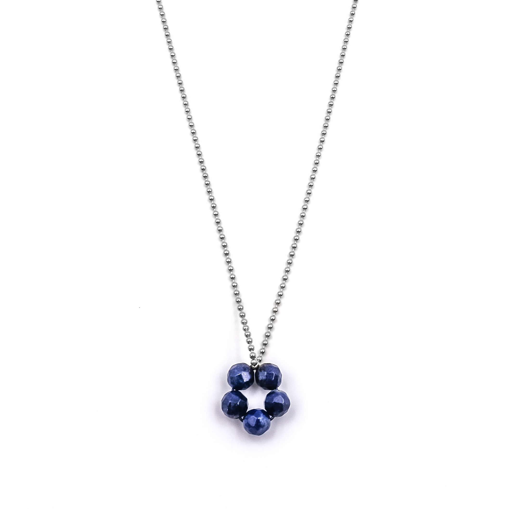 Handgefertigte blumige Edelstein-Anhänger angebracht an einer 925’er Sterling Silber Kugelkette.