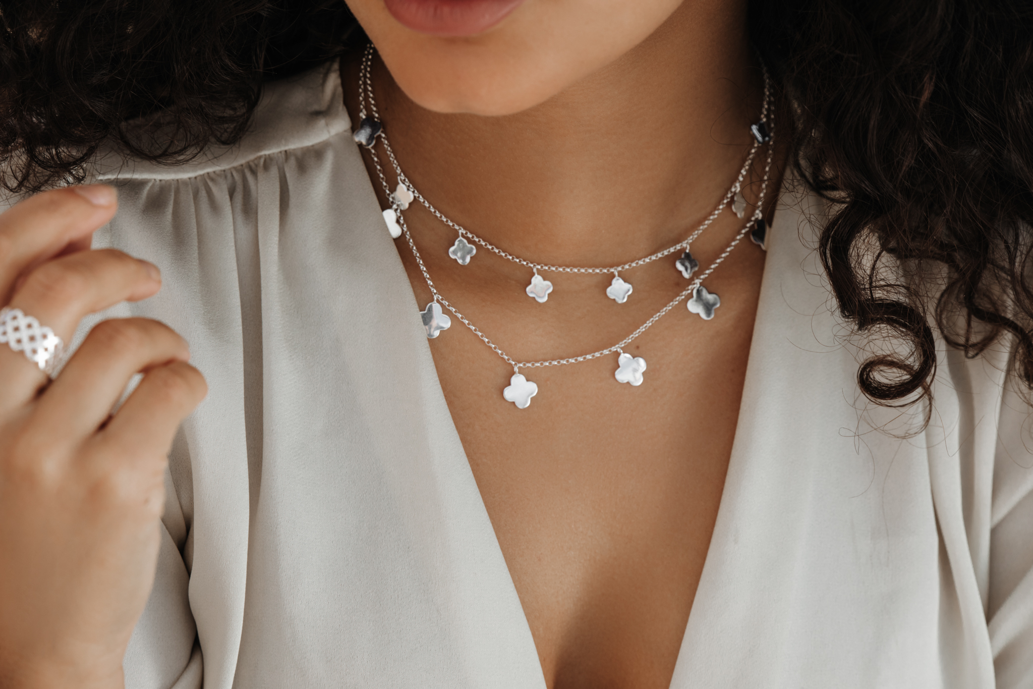 Diese zauberhafte Sterling Silber Carry Kette mit seinen zarten Kleeblattanhängern verbindet Glück und Eleganz auf einzigartige Weise. Die feinen Anhänger strahlen eine tiefe Bedeutung aus, die die Kette zu einem wertvollen Begleiter für besondere Momente macht. Tragen Sie dieses Schmuckstück und spüren Sie die Magie des Glücks, die Sie bei jedem Blick auf Ihr Dekolleté umgibt. Ein perfektes Geschenk, um Liebe, Glück und Verbundenheit zu zeigen. Lassen Sie sich von dieser Kette inspirieren und tragen Sie das Glück immer bei sich.
