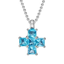 Auffallend und farbenstark: Das Statement-Design interpretiert edle einen Kreuzanhänger neu und überrascht mit ihrer leuchtenden Strahlkraft. Jeder Stein ist einzeln facettiert und wird seitlich von Silberfassungen gehalten – die Kette MADIA soll als Wegweiser im Leben unterstreichen.