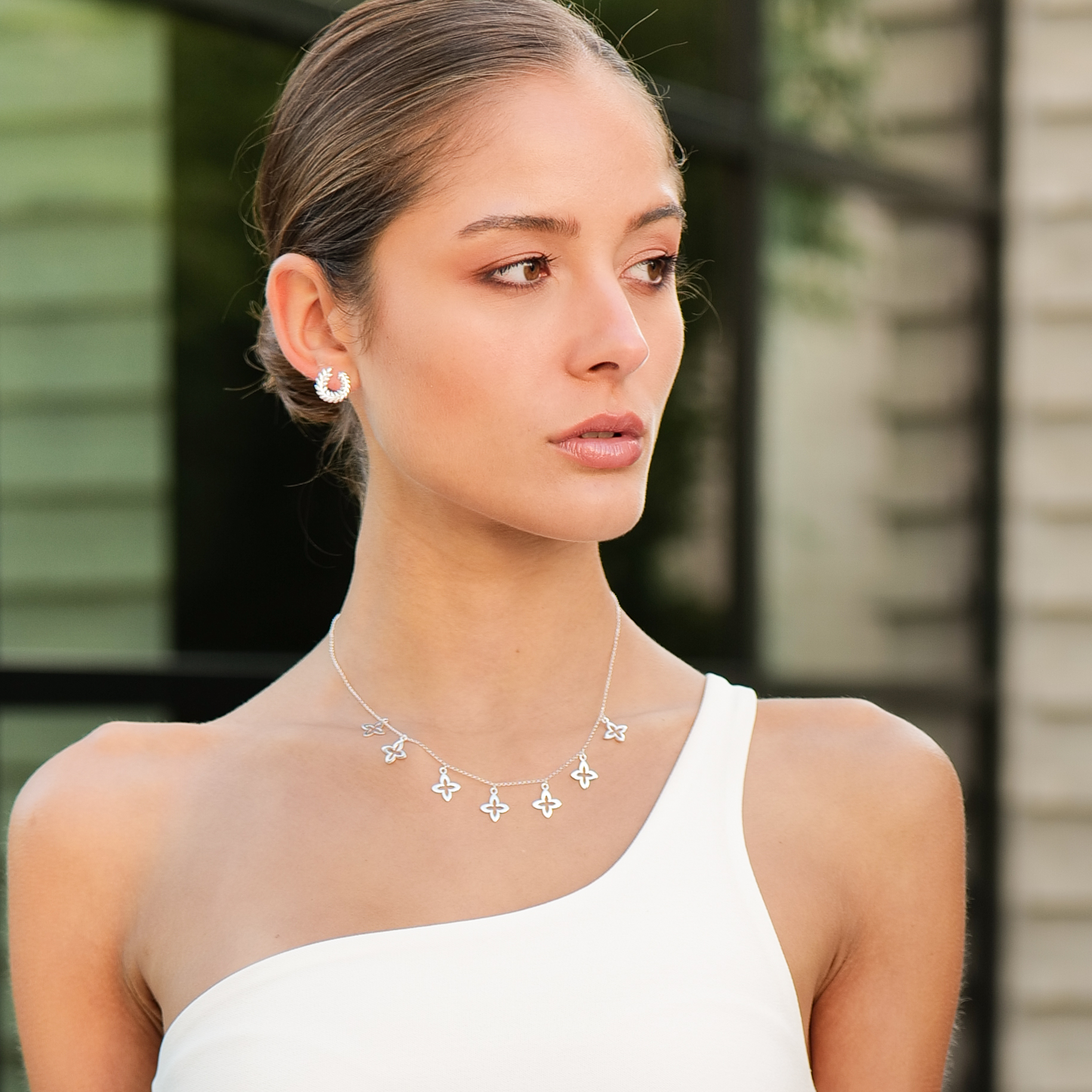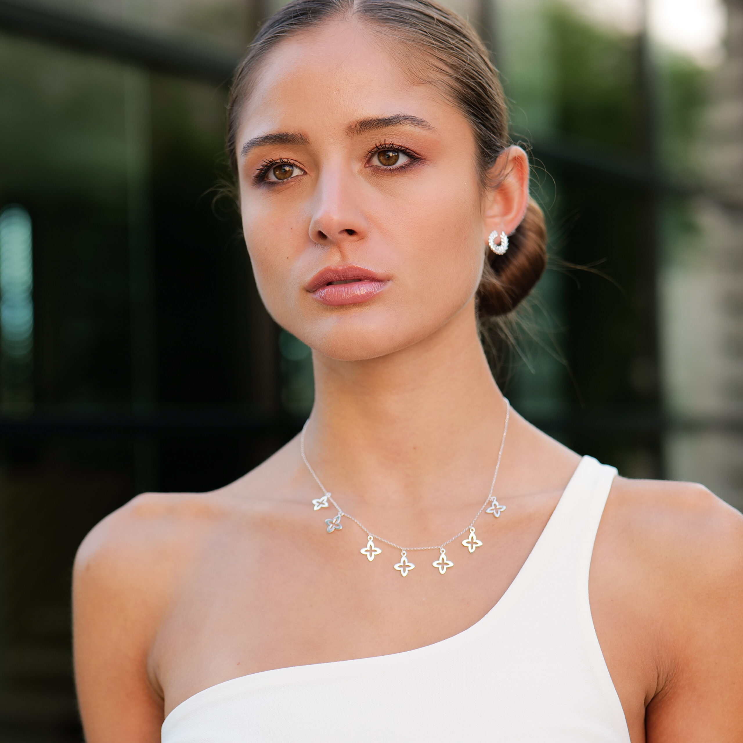 Dann ist unsere Kette Merima aus der Coslada Kollektion die Antwort. Die kleeblattförmigen Anhänger erfinden jeden Look neu und punkten durch ihre feminine Schlichtheit.