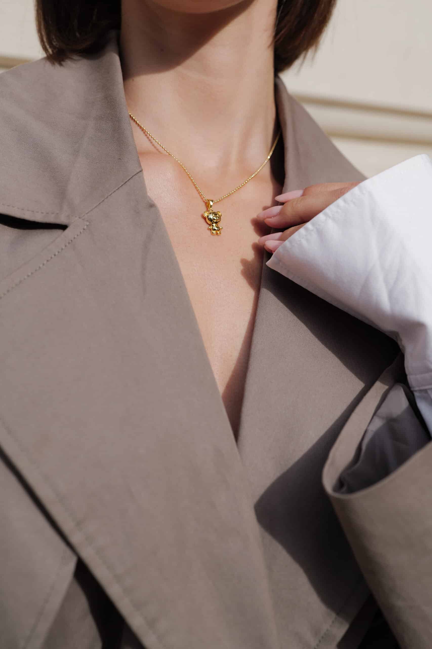 Dieser 925 Sterlin Silber, goldplattierte Teddy-Anhänger zieht mit seiner liebevollen Form sofort alle Blicke auf sich. Die glänzende Oberfläche und die klare Silhouette verleihen der Kette eine moderne Note, während der Bär Erinnerungen an Kindheit und Wärme weckt. Ideal als besonderes Geschenk – oder zum Selbstbehalten.