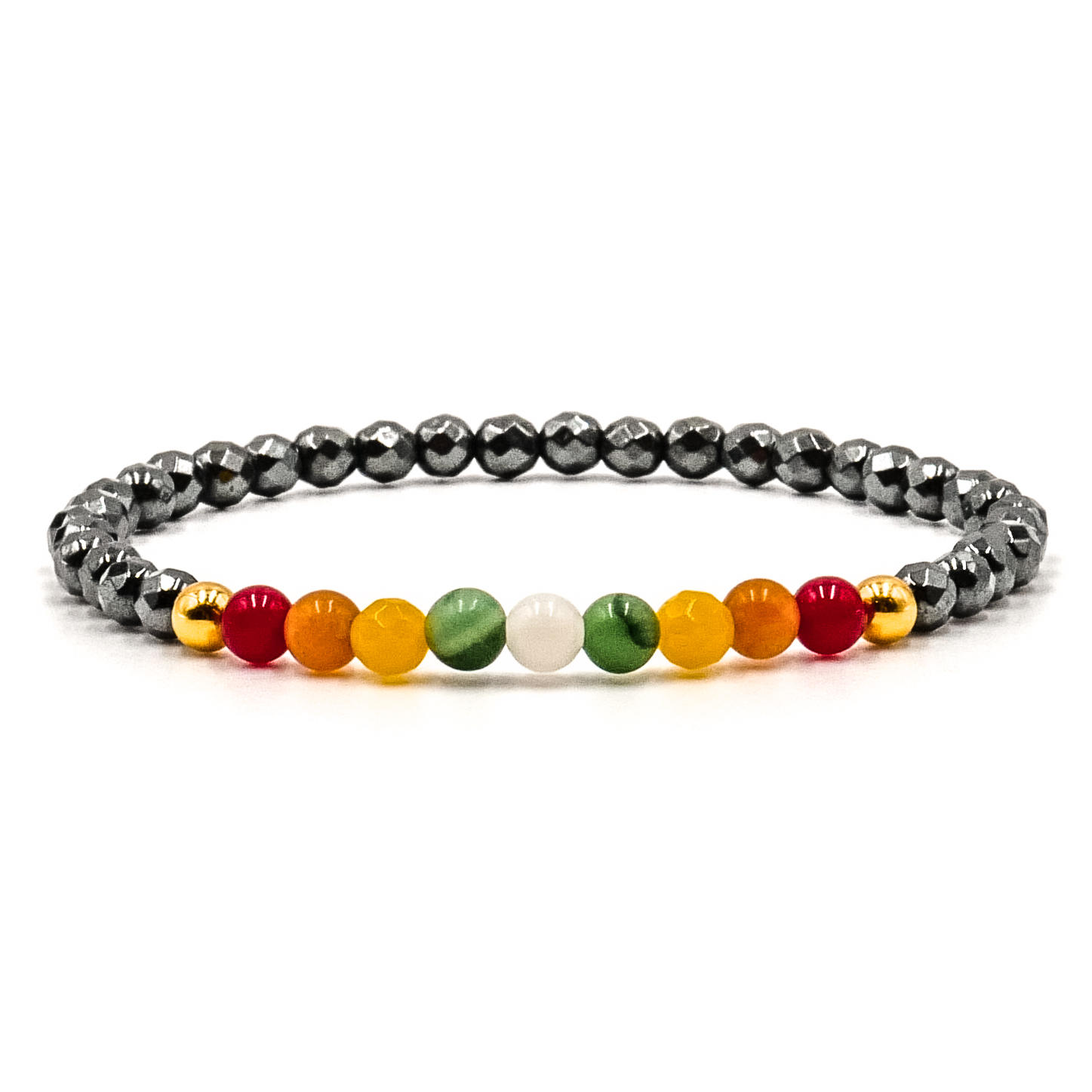 Steine: Hematit, Karneol, Mondstein, gelbe, rote und grüne Onyx
