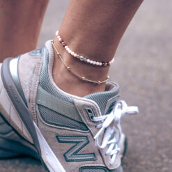 Handgefertigte Edelstein-Kugelfussketten verziert mit 925′ Sterling Silber Elementen, gebunden an einem qualitativ flexiblem Stretchband.