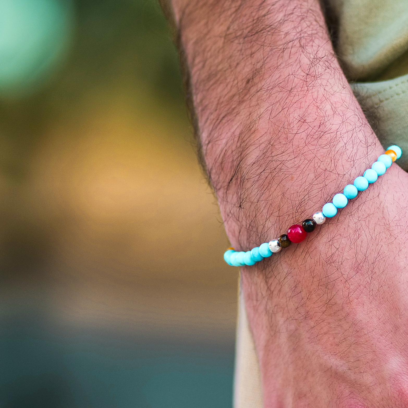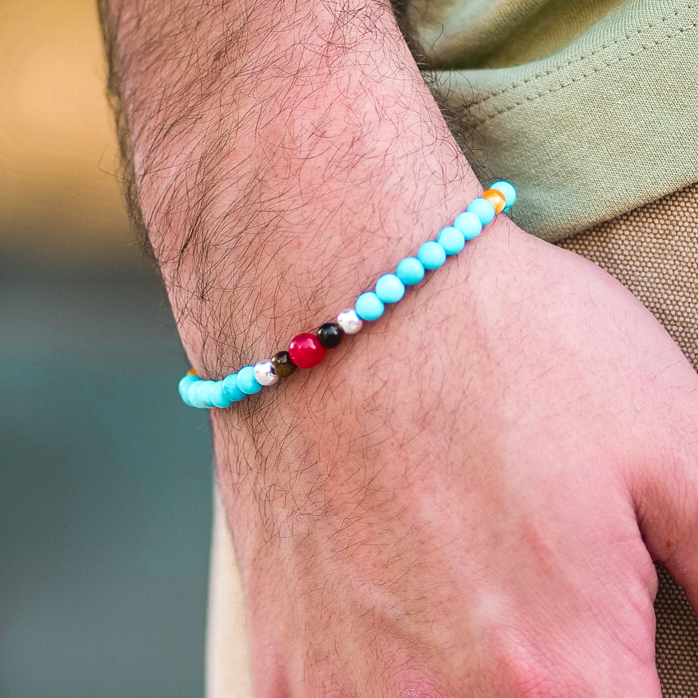 Handgefertigte Edelstein-Kugelarmbänder verziert mit 925′ Sterling Silber Elementen, gebunden an einem qualitativ flexiblem Stretchband.