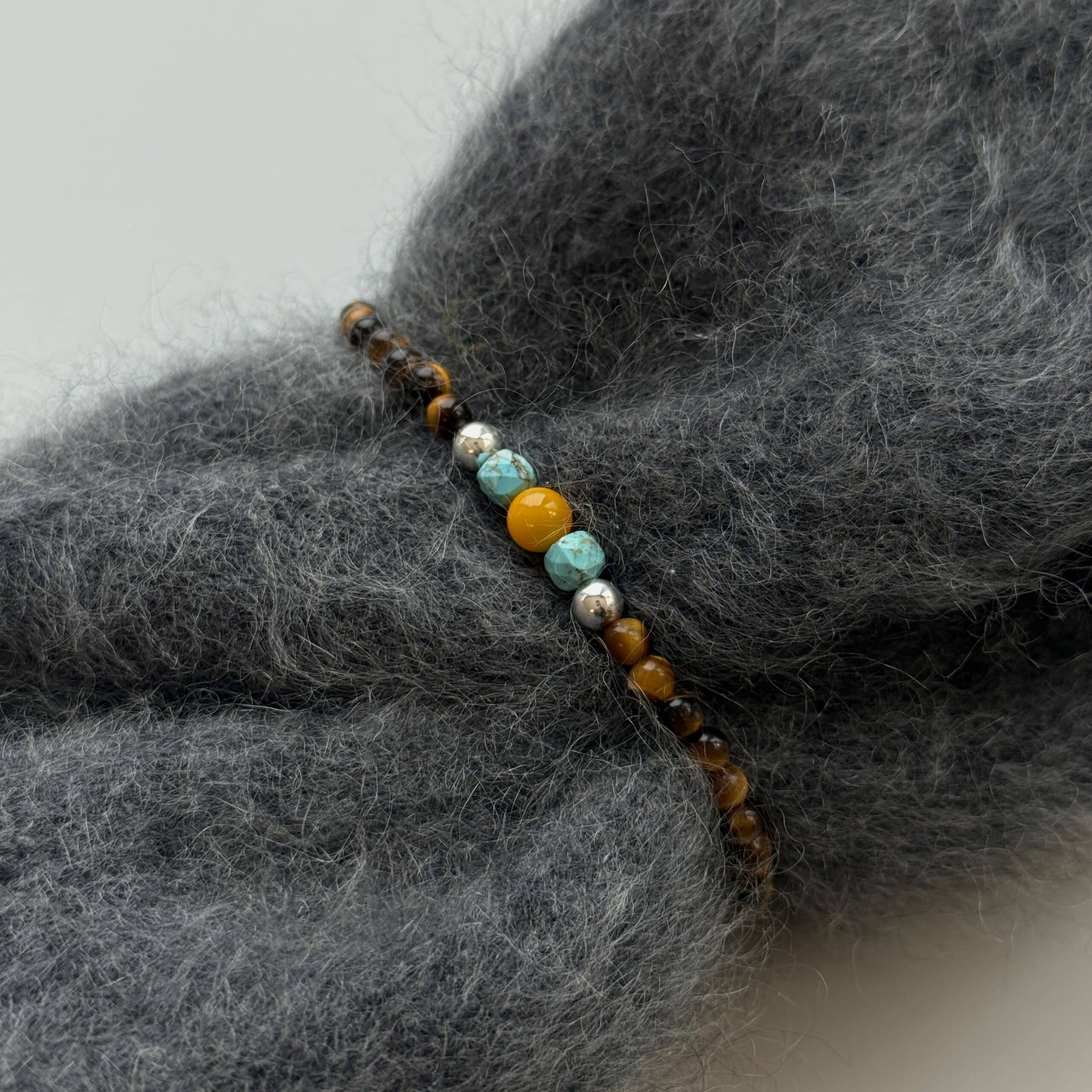 Steine: Tigerauge, Türkis facettiert, gelbe Perlmutt