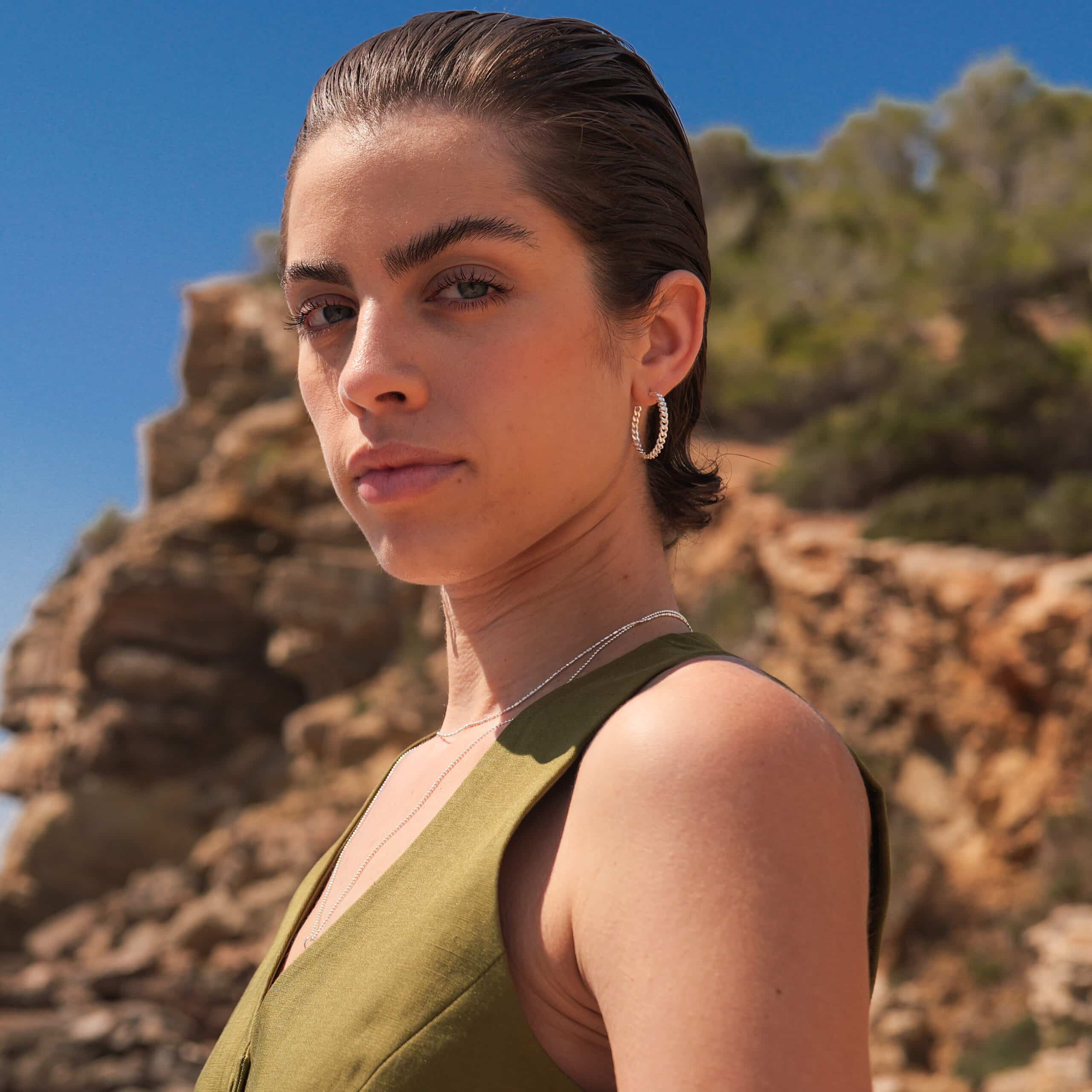 Unsere hochwertigen Creolen aus 925er Sterlingsilber sind Anwärter auf den Titel bestes Schmuckstück für jeden Tag. Durch sein raffiniertes Knettenoptik-Design lassen sie sich leicht mit anderen Schmuckstücken von Mainpunkt kombinieren.