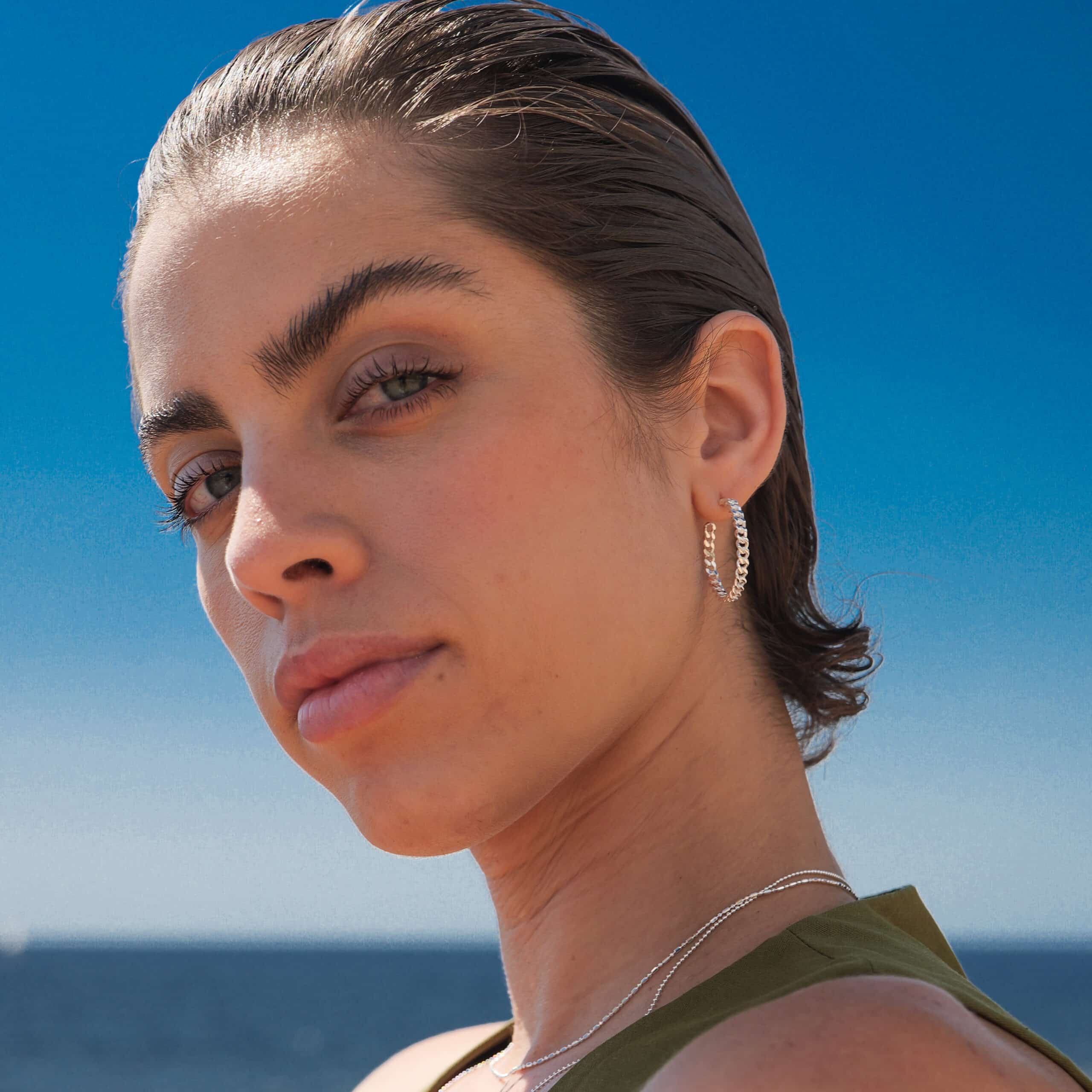 Fans von Schmuckstücken in Kettenoptik sind hier genau richtig! Unsere LIME Creolen sind eine moderne Version und interpretiert den Klassiker neu. Bringen Sie Ihre moderne Seite zum Vorschein! Zu Ihrem cleanen Look sind die Ohrringe Lime der passende Schmuckstück. Sie bestechen durch ihr klares, reduziertes Design.