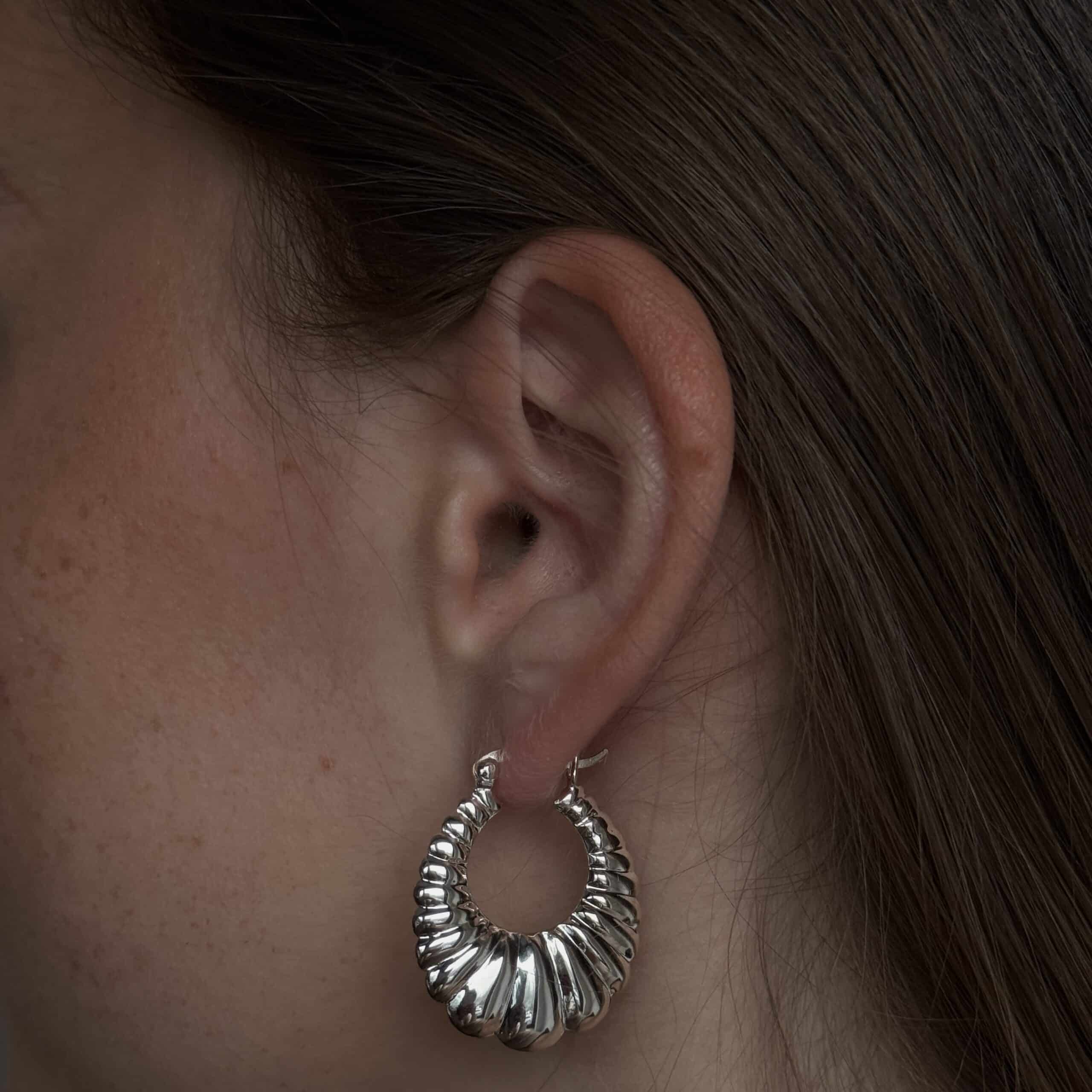 Entdecken Sie stilvolle Raffinesse mit unseren geriffelten Creolen „Melania“, handgefertigt aus feinstem 925er Sterling Silber.