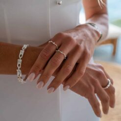 Der filigrane Ring Senta ist mit mehreren zierlichen Zirkoniasteinen besetzt und sorgt für einen eleganten und zeitlosen Schmuck-Look in Sterling Silber.