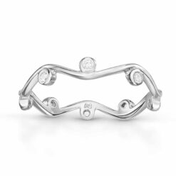 Der Ring ist aus hochwertigem 925er Sterlingsilber gestaltet und mit runden weißen Zirkonia-Steinen besetzt.